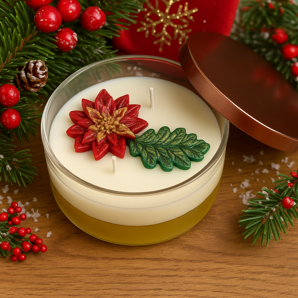 Como una flor que florece bajo la nieve, Winter Blossom ilumina el invierno con su encanto sereno y su espíritu festivo. Su delicada flor de pascua tallada en cera representa el renacer y la esperanza que trae la Navidad.